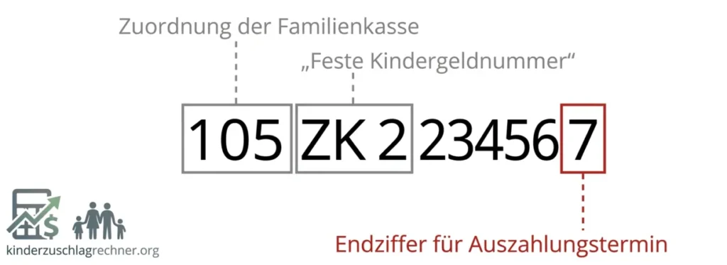 - Die letzte Zahl Ihrer Kindergeldnummer (Endziffer) bestimmt den Auszahlungstermin